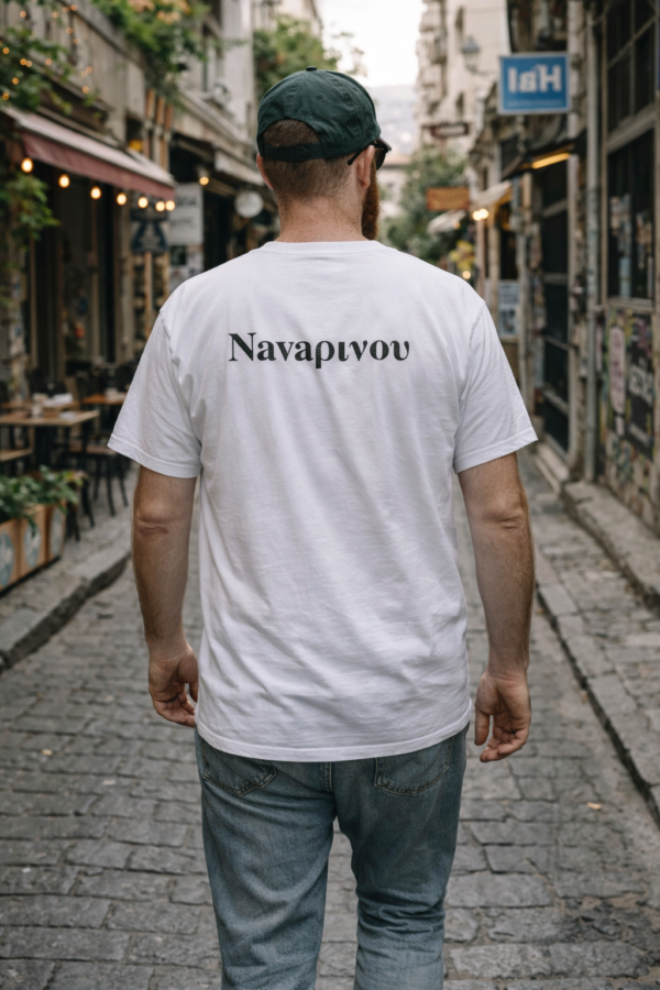 Βαμβακερή μπλούζα κοντομάνικη με θερμομεταφερόμενο τύπωμα βινυλίου <Πλατεία Ναυαρίνου>