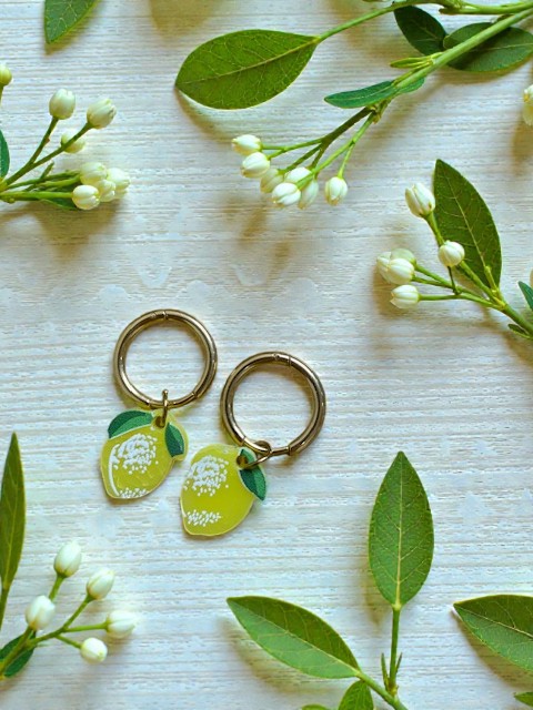 Χειροποίητα επιχρυσωμένα ατσάλινα σκουλαρίκια με θέμα λεμόνι